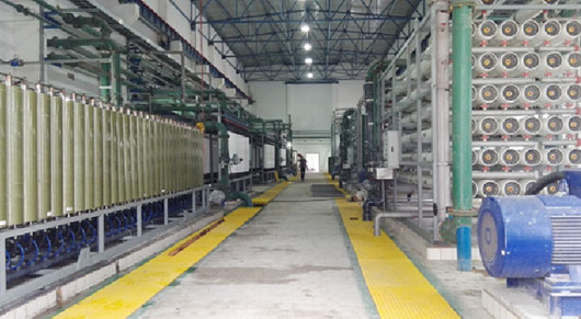 經(jīng)過預處理(混凝、沉淀、過濾)的原水,在壓力驅動下,利用微濾、超濾去除懸浮物、 膠體、病毒等雜質,利用反滲透預脫鹽,利用電除鹽或離子交換深度除鹽,達到各行業(yè)所需高品質除鹽水的水質要求。采用自主專利技術,工藝可靠, 產水水質好,自動化程度高,運行維護簡便等。