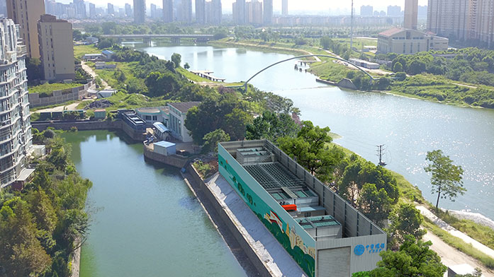 治理措施:采用“源頭截污、就地凈化、集散結(jié)合、清水回補”的思路,采用自主研發(fā)的 “懸浮床” 及“三相增強”生物膜反應(yīng)器等核心技術(shù),運用污水模塊化裝置(CBS),在河道、泵站前池、污水匯集區(qū)域就近設(shè)置,為城市內(nèi)河、流域斷面水質(zhì)達標提供保障。